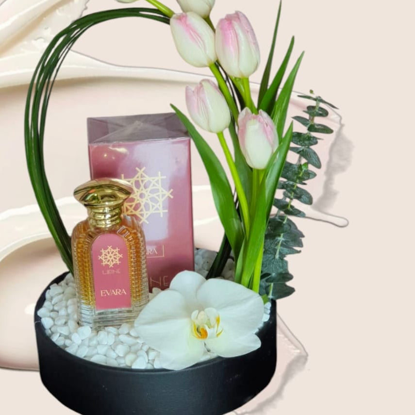 Elevate the moment with the luxurious Evaea set from TheFlowersHope, where the refined EVARA perfume meets the elegant tulip flower, a symbol of sophistication and uniqueness.
